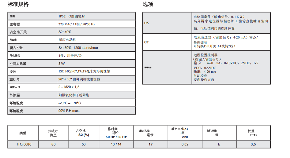 ITQ0080是韩国ITORK公司生产的 角行程电动执行器 ,主要用于阀门等设备的自动控制;主要用于 阀门自动控制 ,如气动球阀、调节型不锈钢球阀等,适用于两位切断或调节场景。